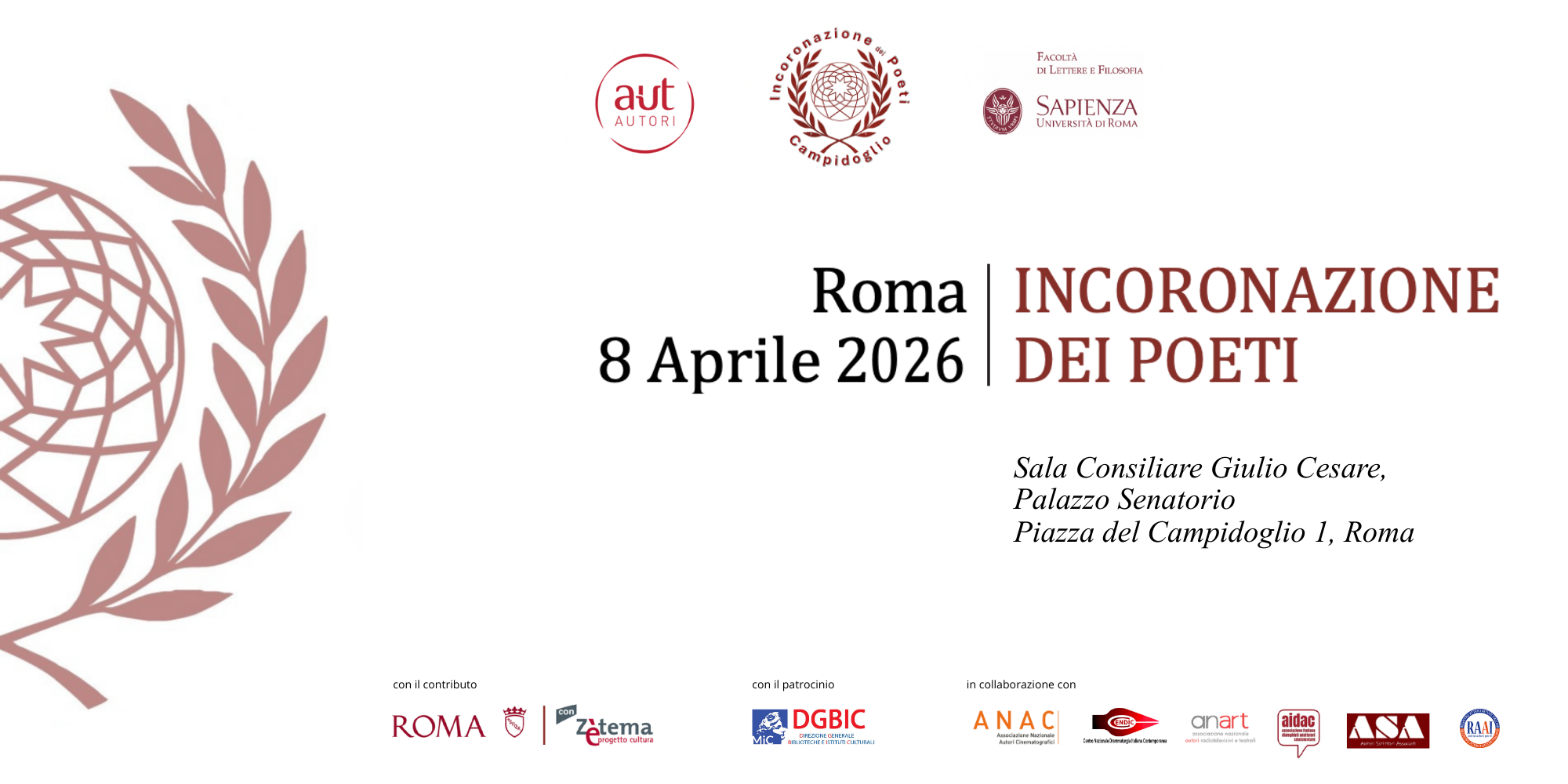 A 685 anni dall’8 aprile 1341, quando FRANCESCO PETRARCA fu incoronato sommo poeta in CAMPIDOGLIO, la Federazione AUT-AUTORI e la FACOLTÀ DI LETTERE E FILOSOFIA DELLA SAPIENZA UNIVERSITÀ DI ROMA intendono rinnovare questa antica tradizione, istituendola come una sorta di “PREMIO NOBEL della POESIA ITALIANA CONTEMPORANEA”, e conferiranno tale prestigioso riconoscimento a VALERIO MAGRELLI.