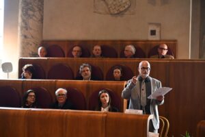 Molti anni fa si parlava del desiderio di scrivere una “storia delle immagini del pensiero”: un’opera capace di attraversare i secoli, le forme del linguaggio e le esperienze umane. In questo percorso si incontra una tensione simile a quella tra filosofia e poesia: da un lato ordine e misura, dall’altro libertà e responsabilità espressiva. È proprio in questa tensione che la parola acquista forza e apre nuovi scenari. Essere qui oggi dimostra quanto la parola possa essere condivisa e rinnovarsi nel tempo. In questo contesto, la parola non è solo comunicazione, ma strumento di conoscenza, relazione e consapevolezza del mondo e degli altri».